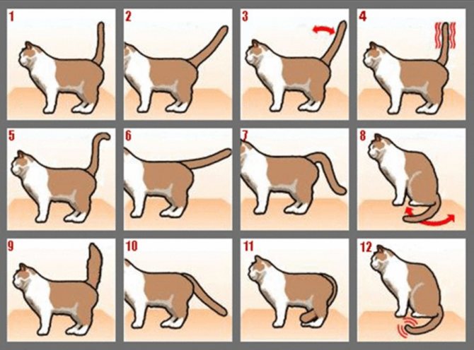 Поднятый вверх факелом хвост свидетельствует о крайнем удовлетворении и желании животного идти на контакт с хозяином. Кошка мурлычет, трется о ноги. Она счастлива и довольна жизнью.