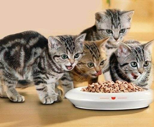 Котят до месячного возраста кормит их мама 10 раз в сутки, а в 1 месяц – 8 раз в сутки. В это время необходимо вводить прикорм. Начинают с кисломолочных продуктов (творожка, ряженки), а вот кефир слишком тяжел для маленьких котят. В 1,5 месяца малышу нужно в день 120 грамм еды, включая и материнское молоко, которое все еще остается для него основой рациона. Можно в этом возрасте начинать кормить его готовыми кормами.