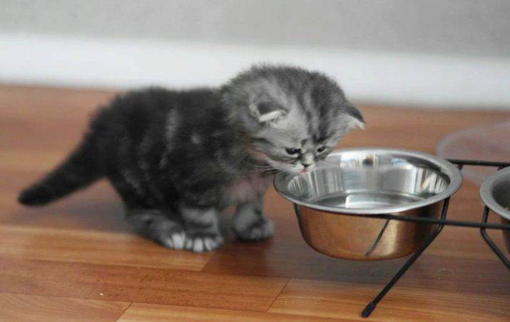 Чтобы котенок питался правильно, порции ему нужно давать небольшие и через короткий промежуток времени, в противном случае пища будет перевариваться с трудом, приводя к икоте и другим последствиям. Класть в миску следует такое количество еды, которое малыш сможет съесть за один раз. Шотландские кошки склонны к набору лишнего веса и ожирению, поэтому нужно особенно внимательно относиться к объему пищи и периодичности кормления.