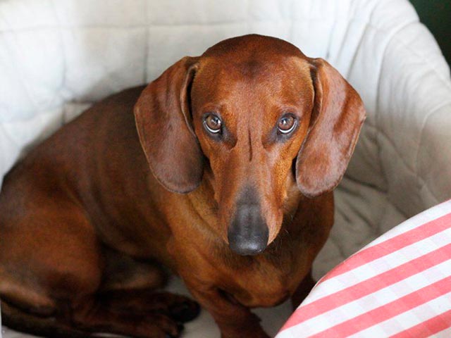 Гладкошерстная или короткошерстная такса – самая крупная разновидность. Шерстяной покров блестящий, без залысин, состоит из жестких волосков длиной около 2 см. Он плотно прилегает к коже.