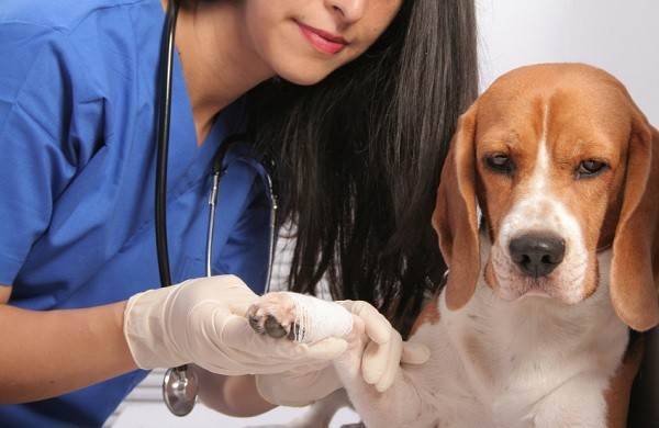 Если укус пришелся в лапу, накладывают бинтовую повязку, но очень важно не нарушить кровоток в конечности