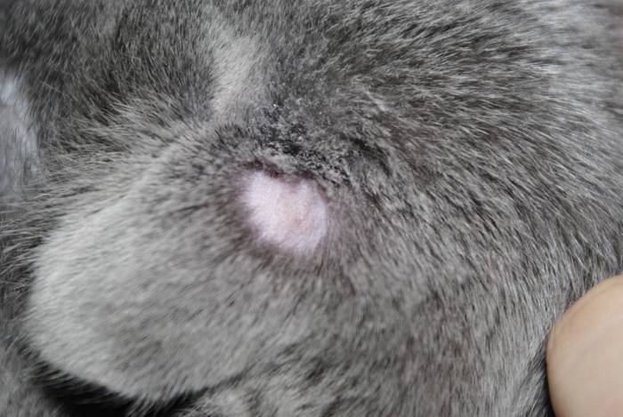 У некоторых кошек имеется нормальная алопеция. Например, на участке от глаз до ушей, там шерсть растет реже и часто владельцы обращаются к ветеринару на тему: «у моей кошечки полысел лобик».