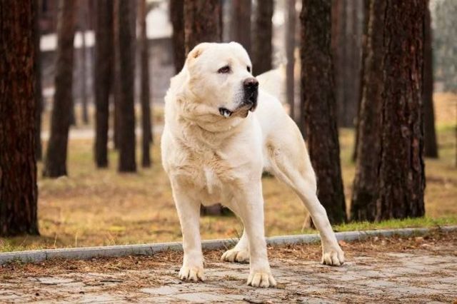 Алабаи обладают внушительной комплекцией, но вовсе не кажутся неуклюжими. Тело идеально пропорциональное, гармоничное, с объемной мускулатурой и хорошо развитой грудной клеткой. Собаки очень крупные: рост кобеля в холке составляет 75 сантиметров, вес 75-80 килограммов. Более высокие параметры допускаются и приветствуются, но только в том случае, если пропорции гармоничные.