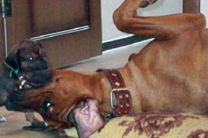 - У суки отнимают щенков, пока её состояние не стабилизируется.