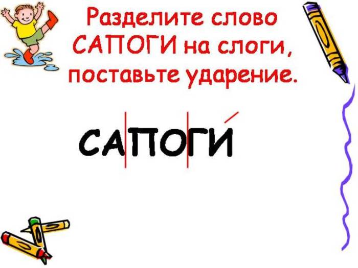 Звуковая схема слова начинается с деления его на слоги. Наименьшая единица устного речевого строения – это слог. Подсказкой для ребенка является количество гласных: сколько их, столько слогов. В русском языке слоговое деление на значимые части подчиняется определенным требованиям. Правила фонетики не всегда совпадают с делением слов на части для переноса.
