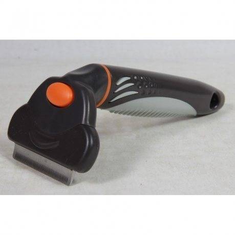 За счет оптимального угла наклона лезвия деликатно выдергивают мертвый подшерсток. Прорезиненная ручка гарантирует надежный захват и удобство эксплуатации. Цена – 985 рублей. Выпускается фурминатор в различных цветовых вариантах.