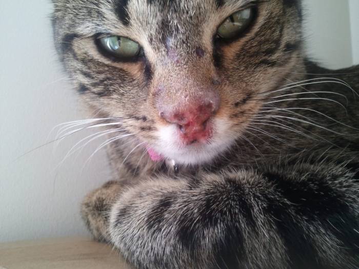 - появляется герпес у кошки на губе или носу;