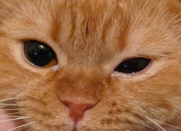 - Блефароспазм – особенно хорошо проявляется в начальном этапе заболевания, кошка как бы все время щурится.