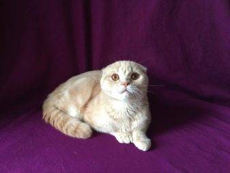 - Лиловый. Как и среди других пород кошек представителей шотландских прямоухих с таким цветом шерсти найти крайне сложно. По этой причине они очень дорого стоят.