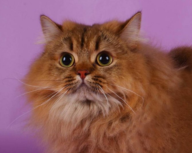 - Голова кошки круглая, а шея толстая. Лоб высокий и выпуклый, имеет немного округлую форму;