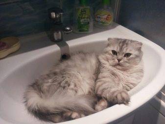 Хотя на первый взгляд мытье кошки хайленд-страйт может показаться сложным и длительным, на практике оно занимает всего 30-40 минут. В результате, шерсть ухоженная, не сваливается и не остается в виде клочьев на мебели или одежде хозяев.
