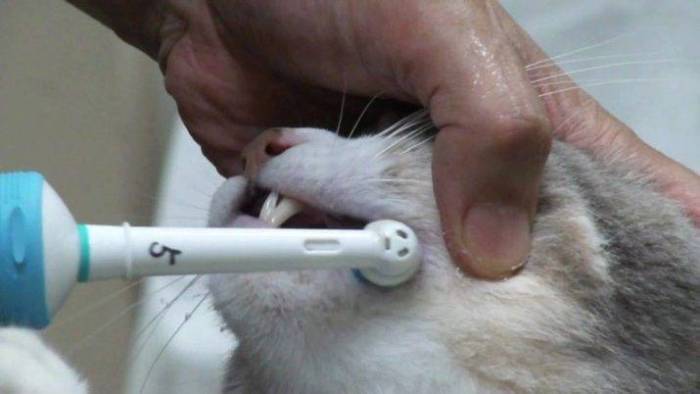 - Зубы чистят раз в 2–3 дня зубной щёткой для кошек и специальной зубной пастой.