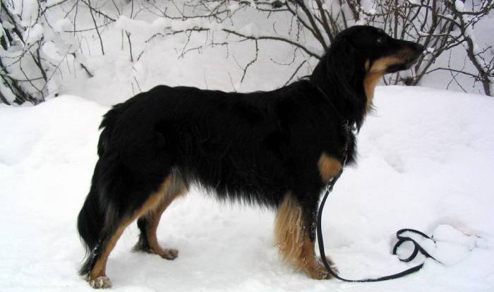 Голова: мощная, широкий лоб, длина морды и черепа примерно одинакова. Ножницеобразный прикус. Треугольные широко посаженные уши.Шея: с прилегающей кожей, средней длины.Корпус: крепкая прямая спина, сильная поясница, несколько скошенный средней длины круп, глубокая, широкая, сильная грудь.Хвост: длина хвоста — чуть ниже скакательных суставов, покрыт густой шерстью.Конечности: прямые, сильные, с развитыми мускулами. Лапы круглые, компактные, сильные.Движения: прямолинейны при любом аллюре. Размашистая рысь с сильным толчком задних конечностей.Шерсть: плотный волосяной покров, средняя жёсткость, небольшой подшерсток. Шерсть длинная, слегка волнистая. Более удлинена на животе, груди, хвосте и задней стороне конечностей. Окрас: существуют только три — палевый, чёрно-подпалый и чёрный.Недостатки: любое отклонение от вышеуказанных пунктов стандарта.