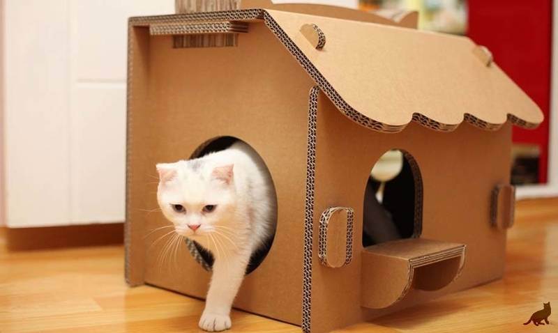 Домик можно купить или сделать из картонной коробки