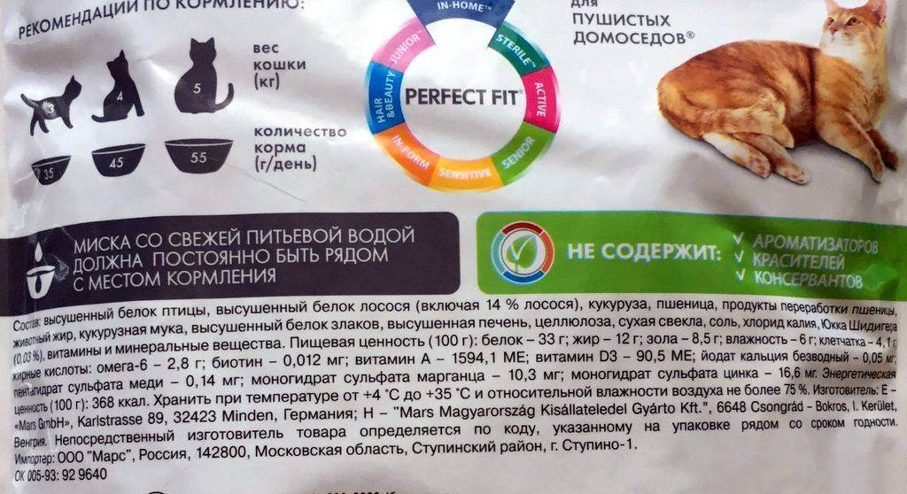 Как и в любых «человеческих» продуктах питания, состав на этикетке прописан в порядке убывания массовой доли входящих в него ингредиентов.