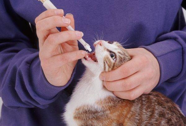 Делать это рекомендуется с помощью специального шприца, который можно приобрести в любой ветеринарной аптеке. Также можно предварительно измельчить таблетку, смешать с небольшим количеством кипячёной воды и дать животному. Для этого рекомендуется воспользоваться либо чайной ложкой (что не всегда удобно), либо шприцем без иголки.