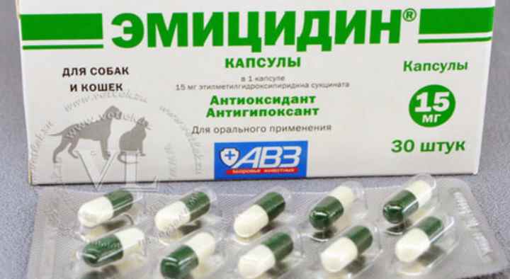 Благодаря своим антиоксидантным свойствам Эмицидин замедляет окислительные процессы в клетках, тем самым блокирует один из основных механизмов развития патологических процессов в системах организма. Ветеринары используют препарат в комбинированной терапии: