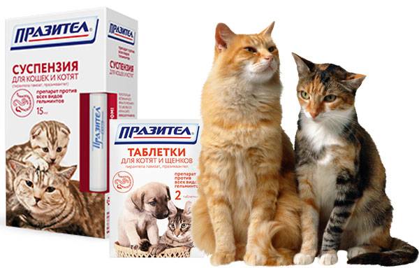 - «Празител для кошек» — 1 таблетка на 4 кг массы тела;