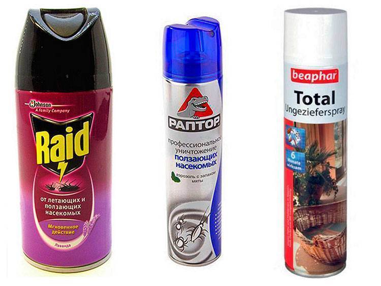 Хорошо зарекомендовали себя аэрозоли: Flee, Комбат, Raid, Control Home Flea&Tick Killer, Чистый Дом, Палач, Раптор.