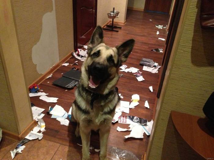 Основные причины, почему собака грызет и портит вещи в доме – щенячий возраст (режутся зубы), а также недостаточная физическая активность. Если вы обнаружили хаос, когда зашли в квартиру, собаку нельзя бить, наказывать едой