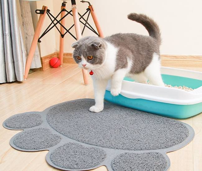 - Не забудьте о покупке резинового коврика под емкость и лопаточки для уборки экскрементов. Коврик нужен для того, чтобы кот не разносил на лапках песок.