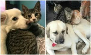 Несмотря на то, что эти животные такие разные, нередко они становятся лучшими друзьями. Известны случаи, когда собаки, подобравшие оставшихся без матери котят, выкармливали их вместе со своими щенятами.