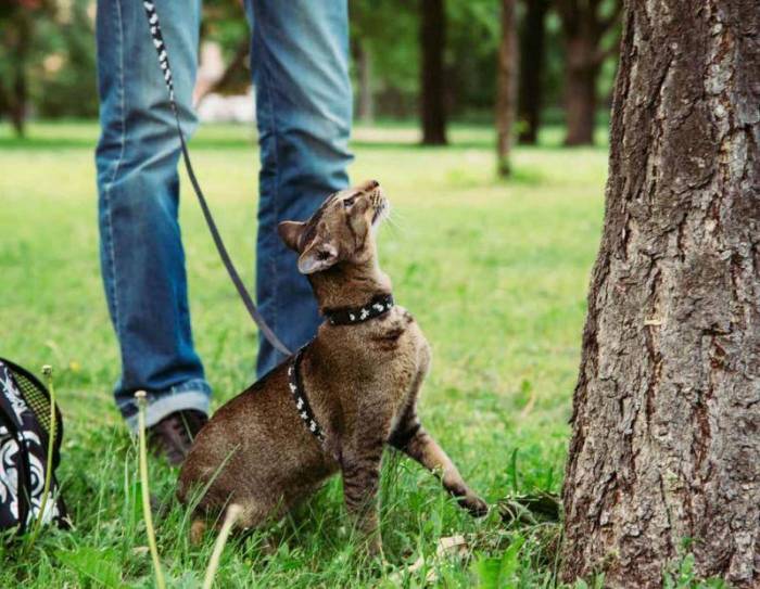 Выбрав наиболее подходящую местность, любимца аккуратно опускают на землю. Не отвлекайтесь на телефон или на беседы с друзьями, контролируйте каждый шаг и окружение, ведь в любой момент может появиться незнакомец или собака без поводка. Предоставьте кошке возможность удовлетворить свое любопытство, не отдергивайте ее от каждого куста (подобные действия могут нанести животному увечья).