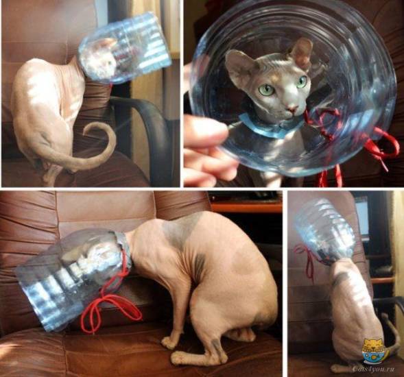 Предлагаем простой вариант, как сделать из пластиковой бутылки, изготовляемый в течение нескольких минут воротник, который надевается и фиксируется одной рукой (пока остальными тремя вы удерживаете отчаянно рвущееся, царапающееся и кусающееся животное, неожиданно оказавшееся на удивление сильным и вертким).