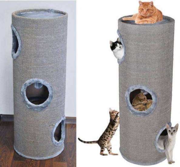 - Острые края заклеить изолентой, пластырем, скотчем, иначе кошка может пораниться.