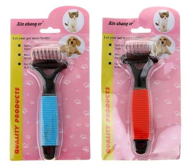 Можно купить в зоомагазине специальное приспособление ꟷ колтунорез. Он выглядит как расческа с тупыми зубьями. Между последними расположено лезвие, которое помогает подрезать свалявшуюся шерсть.