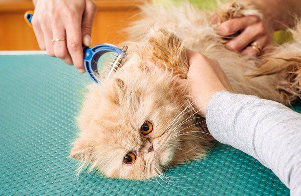 Для кошек такая процедура неприятна, поэтому ее нужно приласкать, разговаривать тихим голосом и дать ей лакомство, чтобы расческа и ножницы не ассоциировались у нее с неприятными моментами.