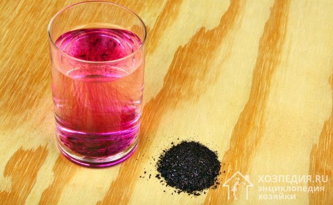 При обработке марганцовкой ее растворяют с водой. Средство должно получится слабо-розовым. Очищать им можно только темные ковры.