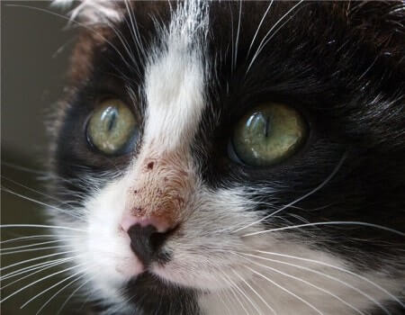 Первые признаки кальцивироза – подавленное состояние, снижение активности, иногда рвота. Они неспецифичны, и не дают представления о том, чем заболела кошка. Характерный симптом – выделения из носа и глаз, появление язвочек на слизистых (рот, язык, мочка носа, верхняя губа). Поражения болезненны, из-за чего животное не может есть, а в более тяжелых случаях – пить и вылизываться. Дыхание становится шумным, как у человека с заложенным носом, появляется храп.