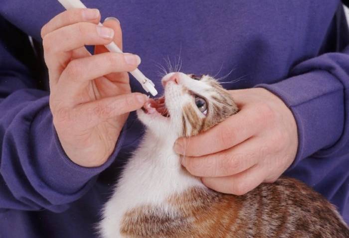 - Выпоите кошку чистой водой из шприца без иглы или резиновой груши с мягким наконечником. Если не дать животному запить таблетку, из-за горького вкуса может пойти пена изо рта, усилиться слюноотделение.