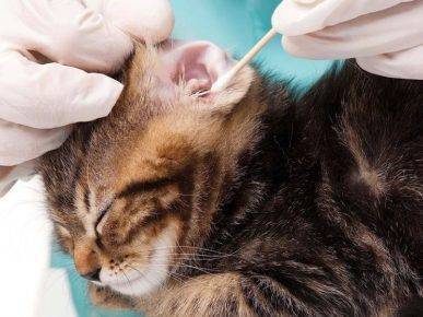 После того как ветеринарный врач установил причины беспокойства кота и поставил диагноз, он прописывает лечение. В первую очередь с помощью препаратов ветеринар снимает ушную боль и зуд у кошки. Если в ушах имеются выделения, грязь, избыток серы, то проводят чистку. Она выполняется в следующей последовательности: