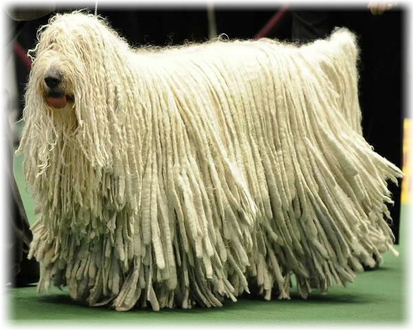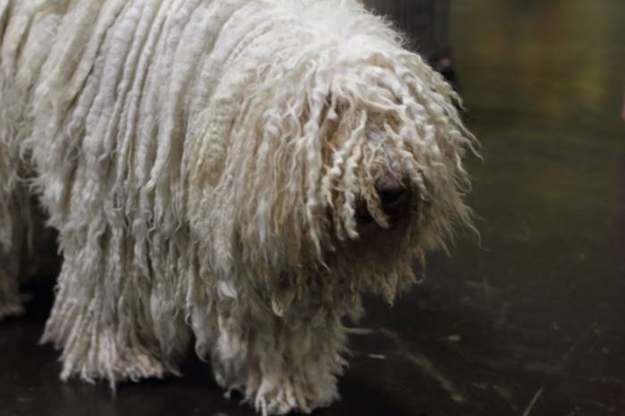 Шерсть у комондоров очень необычная, свалявшаяся в длинные шнуры (дреды)