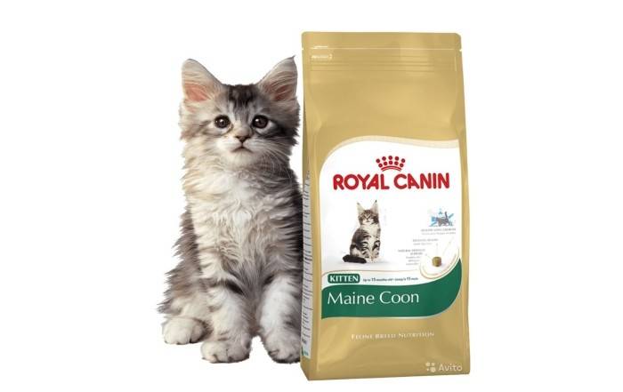 - Royal Canin Kitten Maine Coon, основной ингредиент курица для котят до 15 месяцев породы мейн-кун;