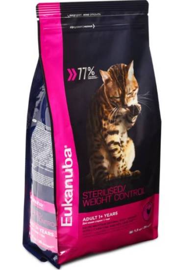 Сухой корм от бренда Роял Канин довольно популярен среди хозяев кошек и котов. Он производится во Франции, фасуется в России, и находится в среднем ценовом сегменте. Его линейка содержит специализированную сушку для кошек, которые прошли процедуру стерилизации. Он разработан в соответствии с потребностями организма, а также изменений, произошедших в нем. Поедая такую пищу, кошка не набирает лишний вес, при этом у нее хорошее пищеварение и блестящая шерсть. Также он приводит в норму мочевыделительную систему. В своем составе продукт содержит только растительную пищу и важные микроэлементы. Корм Роял Канин входит в супер-премиум класс, поэтому его качество держится на высшем уровне.