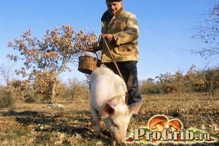 Чтобы найти трюфели в лесу понадобится хрюшка. Свинья — это первое животное, которое помогало человеку в поисках гриба. Сначала необходимо обучить свинью на его запах. Если свинья почувствует запах в лесу, где обычно растут трюфели, то она начнет рыть землю. Охотнику необходимо вовремя отогнать животное, иначе деликатес достанется последнему.