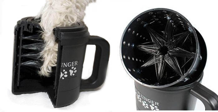 Paw plunger — лапомойка для собак производства США, изготовленная в форме кружки с ручкой. Имеет разборную конструкцию, поэтому без труда можно брать с собой в дорогу.