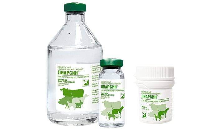 При лечении различных патологий у собак Лиарсин применяется в форме таблеток и раствора для инъекций.