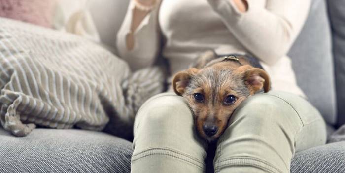 Ощущение страха – питомец старается найти убежище и спрятаться возле своего вожака.