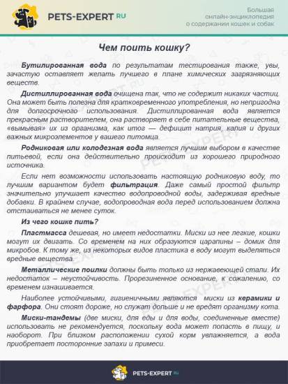 Притом её качеству нужно уделять повышенное внимание. Если водой из-под крана можно без проблем пользоваться для приготовления еды, то для кота она так же подходит