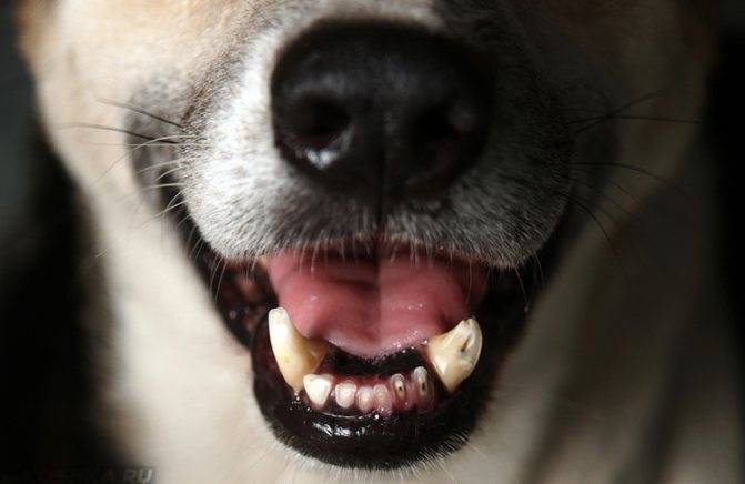 Зубной камень называют самой частой причиной подобного зловония. Из-за плохого ухода за эмалью и деснами питомца на его зубах возникает налет, который со временем превращается в камень. Характерный желтовато-коричневый окрас на зубной эмали у собаки подтвердит эту теорию.