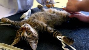Чтобы установить место локализации нужно обследовать животное. Достаточно провести пальпацию. Начиная с головы пальцами, перебирая кожу кошки нужно переходить в сторону хвоста. Если при прощупывании выявлены неровности, следует их осмотреть, раздвигая волосяной покров. В случае болезненности животное выдаст место патологии своей реакцией на боль.