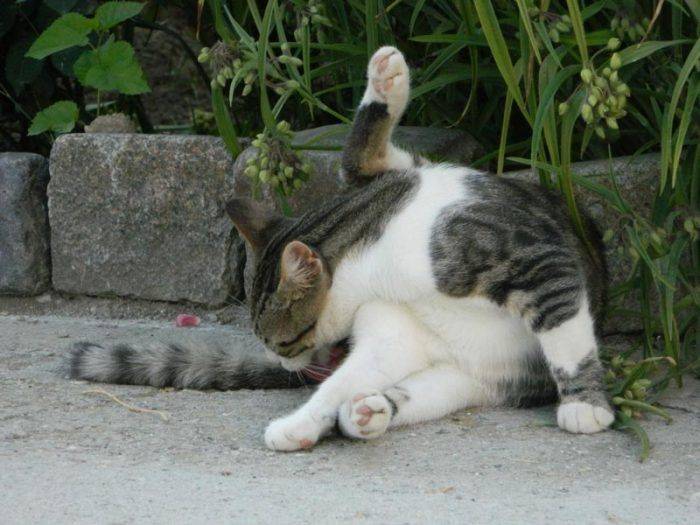 Часто умывание сопровождается выкусыванием невидимых человеку раздражителей. Но это не обязательно вошь или блоха, так питомцы очищают загрязнения кожи.