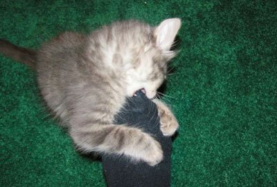 - При заведении маленького котенка, необходимо сразу приучать его к когтеточке (см. как отучить котенка обдирать обои) и оборудовать для него место отдыха. В идеале это лежанка или домик.
