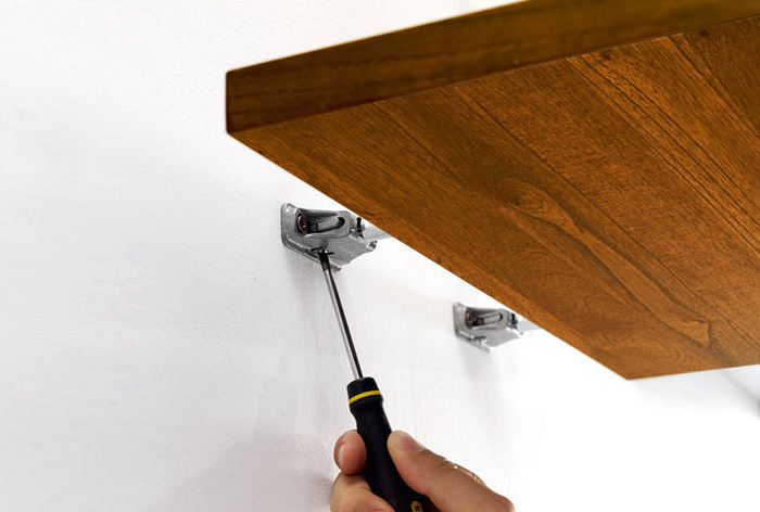 Далее нужно понять, какой тип крепления у полки. Обычно в комплекте с полкой и инструкцией к ней еще прилагаются и элементы, с помощью которых осуществляется крепёж изделия. Также необходимо подобрать кронштейны, благодаря которым и будет происходить крепление полочки.