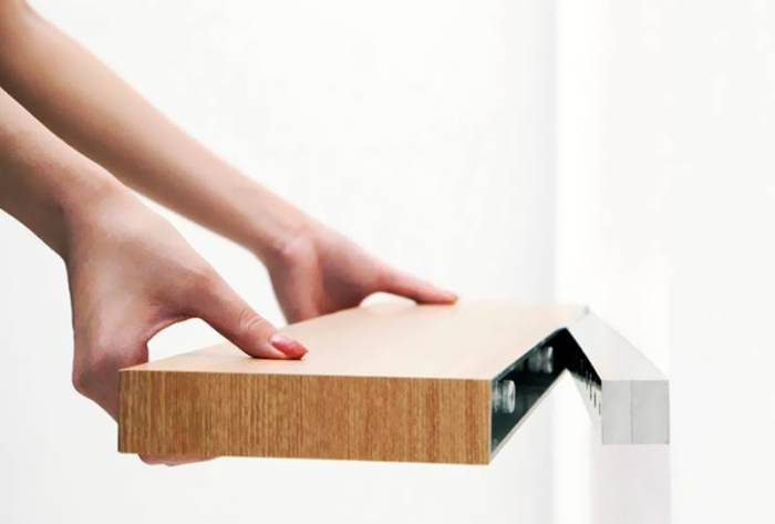 Также нужно учитывать толщину стены. Если она превышает 25 см (для кирпичных) или 10 см (для бетонных), то невидимый крепеж способен выдержать большие нагрузки. При монтаже на более тонкие перегородки, а также стены из дерева или ГКЛ нужно понимать, что полка будет выполнять исключительно декоративную функцию, размещать на ней тяжелые предметы запрещено.