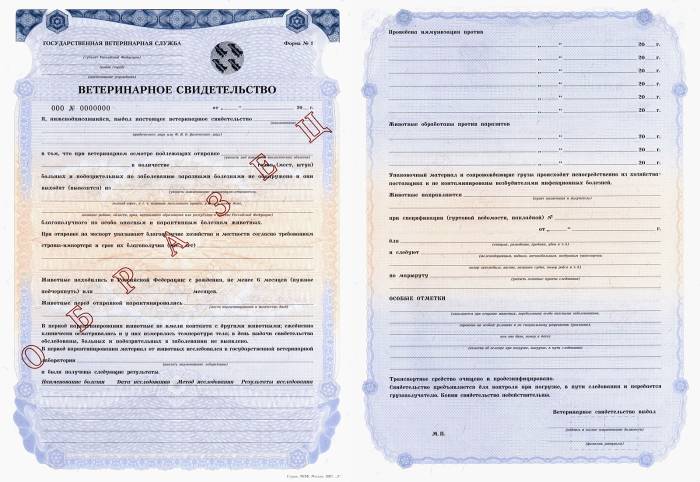 Помимо проездного документа, на каждое животное должна наличествовать справка о состоянии его здоровья, которая выдается государственной ветеринарной службой на бланке по форме № 4. А также выдается свидетельство по форме № 1.